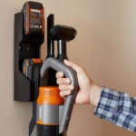 Priložený držiak na stenu s dvojitým nabíjaním bezpečne drží ľahký tyčový vysávač a príslušenstvo pre efektívne úložné riešenie bez stresu